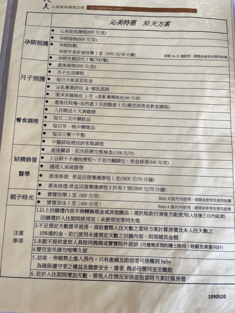 ✅入住期間有課程活動,沁美的課程最特別的是不僅從孕期就能開始上課,產後還有「攜子課程」可以上到寶寶3歲~另外還有特別的產後體態修復課程,可以由護理人員幫媽媽綁束腹帶,加速產後恢復。